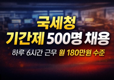 국세청이 2026년 3월 정식 출범 예정인 ‘국세 체납관리단’ 운영을 위해 기간제 근로자 총 500명을 공개 채용한다. 이번 모집은 국세청이 대규모로 단시간 근로자를 선발하는 사례로 주목받고 있으며, 근무시간은 하루 6시간(주 30시간), 월 급여는 수당 포함 180만원 수준으로 안내됐다.