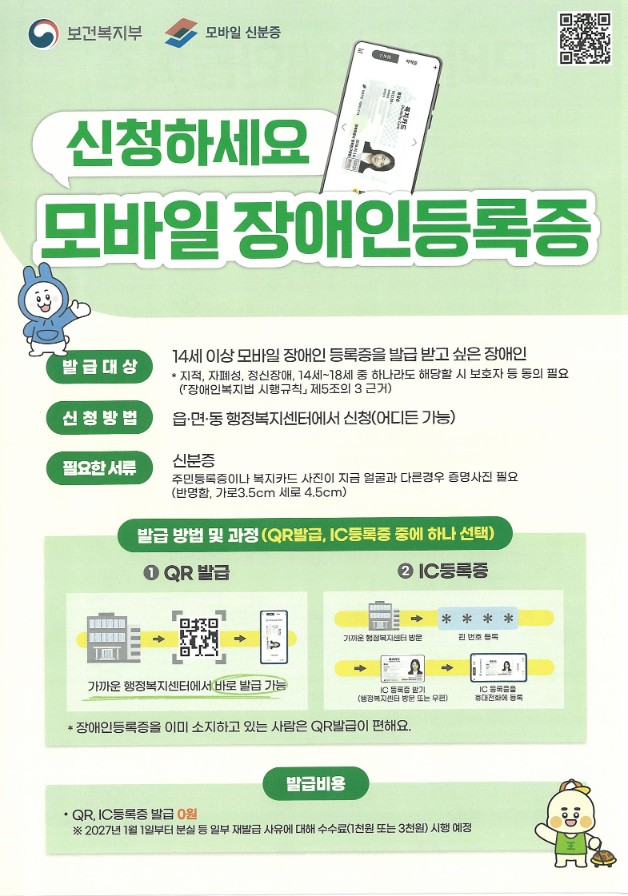 모바일 장애인등록증은 신분증 휴대 부담을 줄이고 분실 위험을 최소화한다. 디지털 행정 환경에 맞춰 복지 접근성을 높이는 핵심 수단으로 활용될 예정이다.
