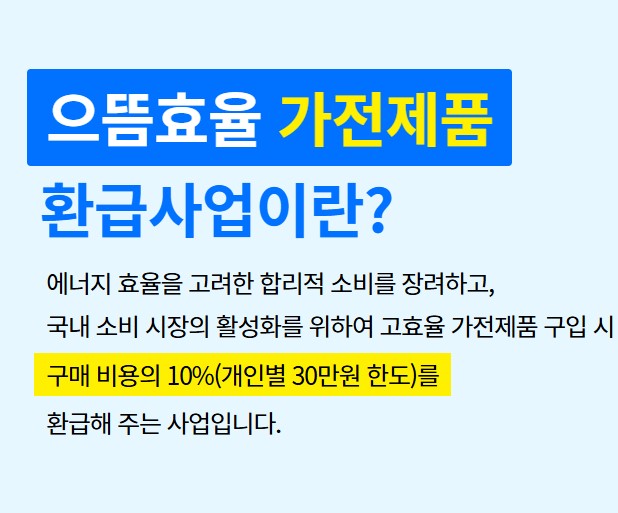 에너지 절약과 가계 부담 경감을 동시에 잡을 수 있는 으뜸효율 가전제품 환급사업은 고효율 가전을 구매한 소비자에게 일정 금액을 환급해 주는 제도입니다. 정부가 추진하는 대표적인 친환경 정책으로, 참여자들은 전기요금 절약뿐만 아니라 구매 비용의 일부를 되돌려 받을 수 있는 혜택을 누릴 수 있습니다. 특히 냉장고, 세탁기, 에어컨 등 주요 가전에 적용되어 생활 전반에서 절감 효과를 체감할 수 있습니다.